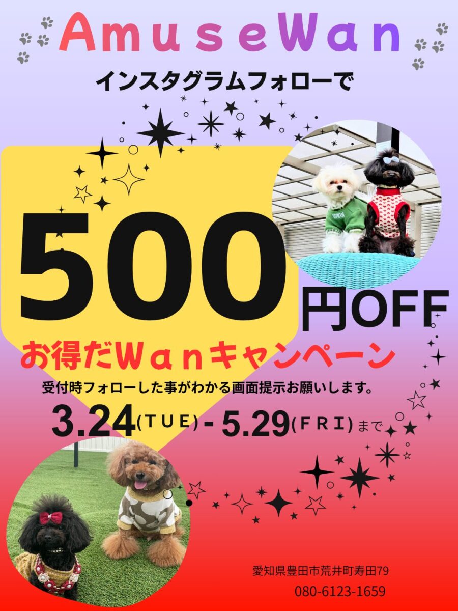 ☆☆インスタグラムフォローお得だWanキャンペーン☆☆